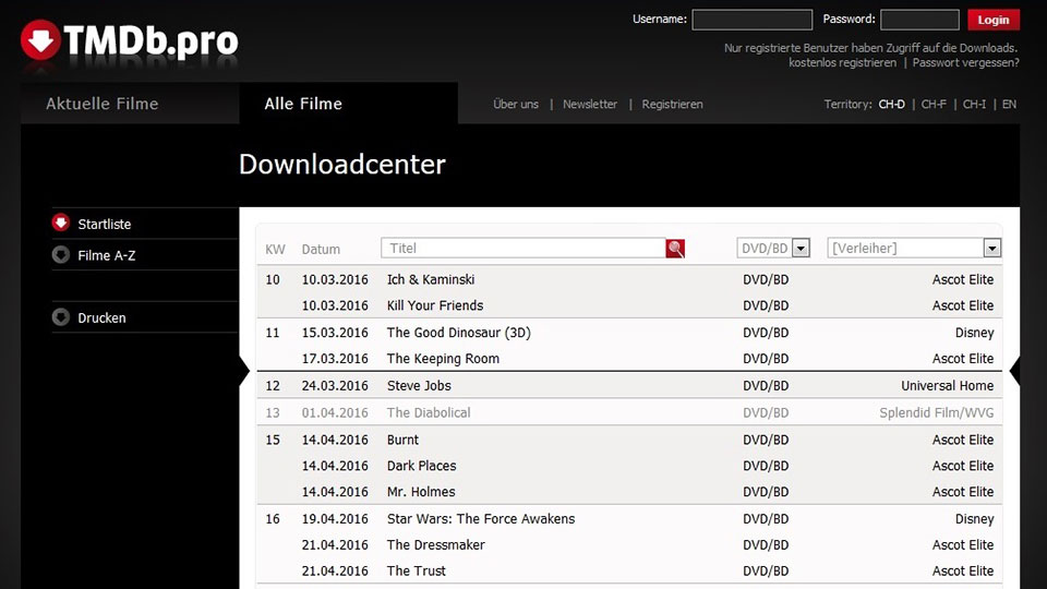In the Download Center, journalists, cinema operators and distributors can find press and marketing material from film distributors, home entertainment distributors or film festivals.