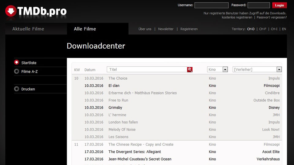 The directory of the entire film industry is visible to users that are logged in. For those who don't have a password: Click here for the registration form in four languages.